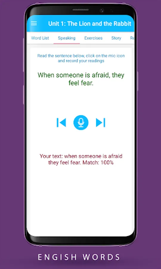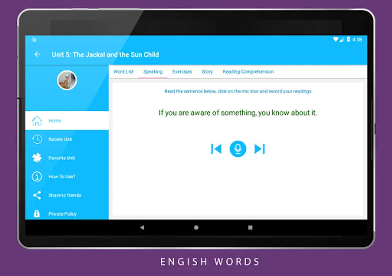 Third, Record the sentence given by the application to practice your spelling with new words. The application use the AI technology and language processing to to help you to improve the English speaking.