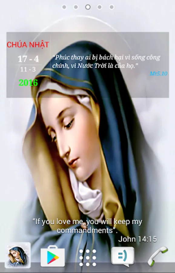 Add life to your mobile phone and the image of God and Mary help us always close to God, Catholic Live Wallpaper provides the beautiful images of God, Mary and All Saints. With the Word displays every day as word of God reminds us to live pleasing to the Lord.