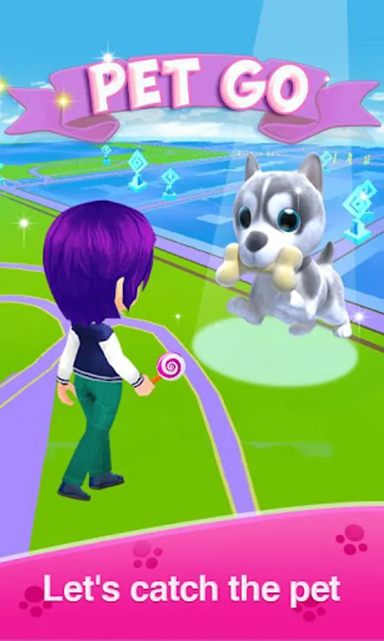 This is a world parallel to the real world. The difference is that here are lovely pets. You will be transformed into a pet trainer into the world. Carefully observe the aperture on the ground. There may be hidden cute pets. Go to the rotating building to get pet food. Throw food to them and catch them.