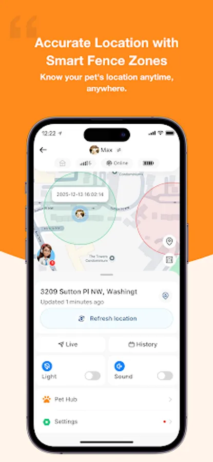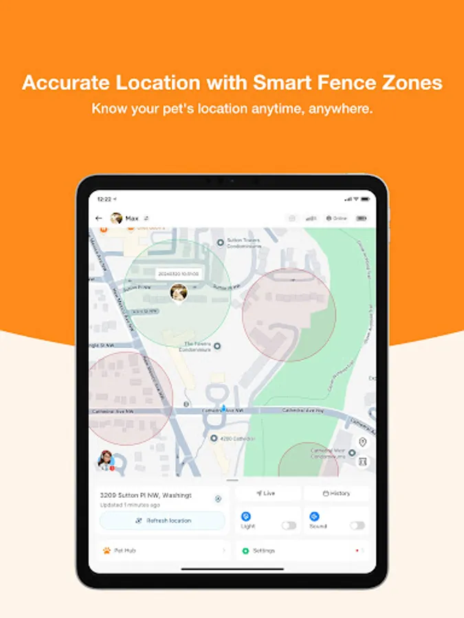 The app enables pet owners to set up safe zones, like their home or a pet-friendly park they trust, and get notifications when their pet leaves these areas. This feature ensures the pet is kept from wandering off or getting lost in unfamiliar areas.