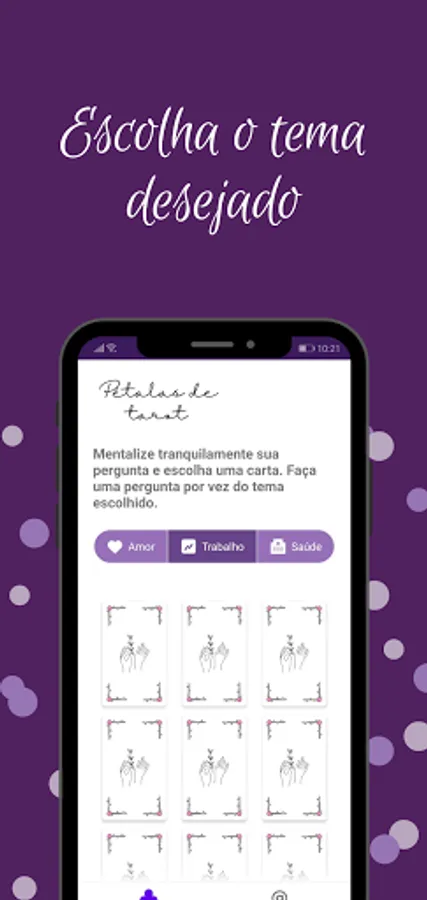 The Tarot Petals, allows consultants to ask simple questions on the topics of Love, Health and Work with the option of digital tarot.