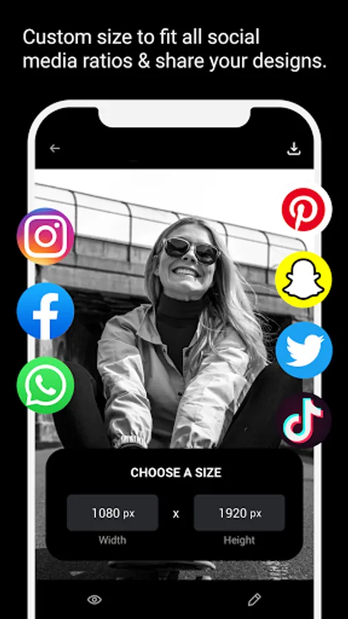 • Crop photos or background freely (any aspect ratio, custom dimensions to adapt for social media ratios).