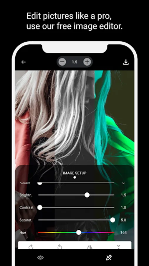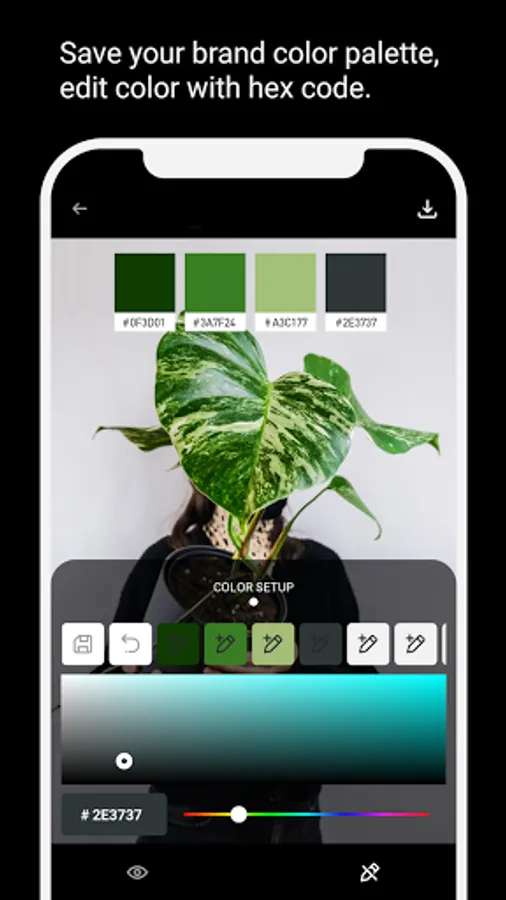 • Brand color palette - Create and save your own color palette with HSB or HEX-Color Codes.