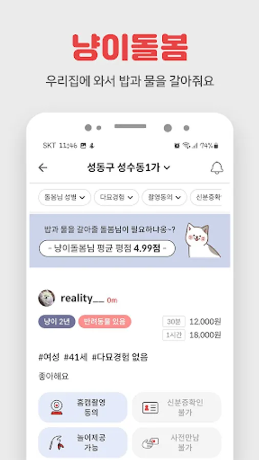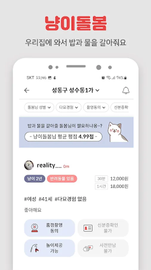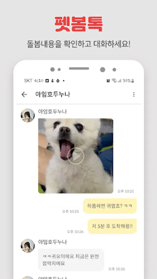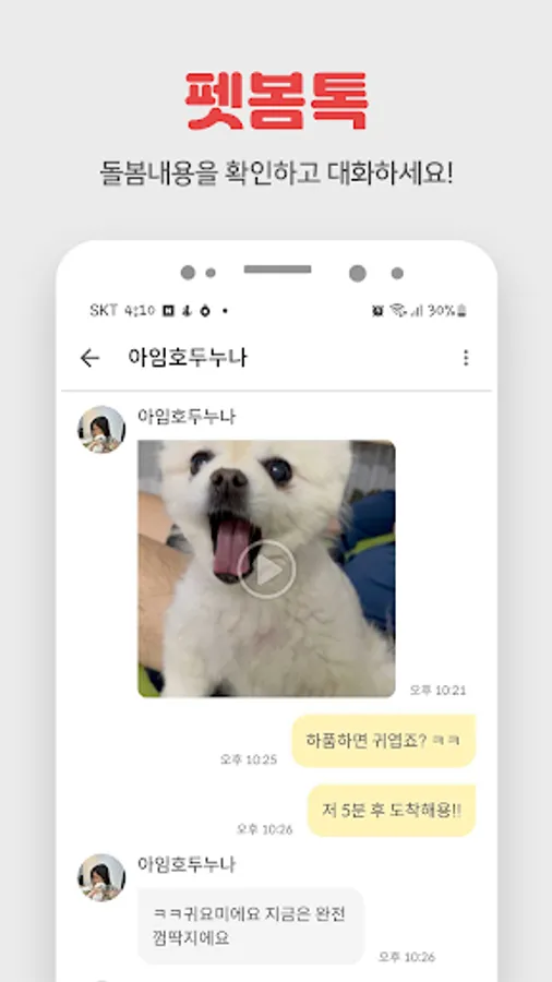 Anyone who is a member of Petbom can talk like KakaoTalk without needing a phone number.