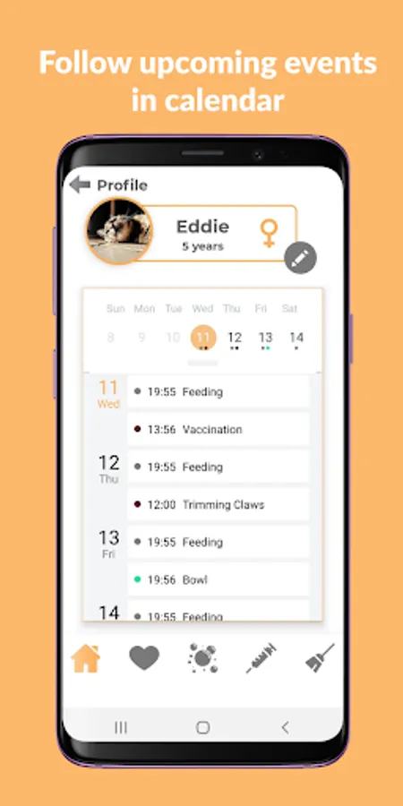 Insert into the app all important events and duties that can slip your mind. Thanks to many personalized notifications, taking care of your pet won’t be problematic anymore.