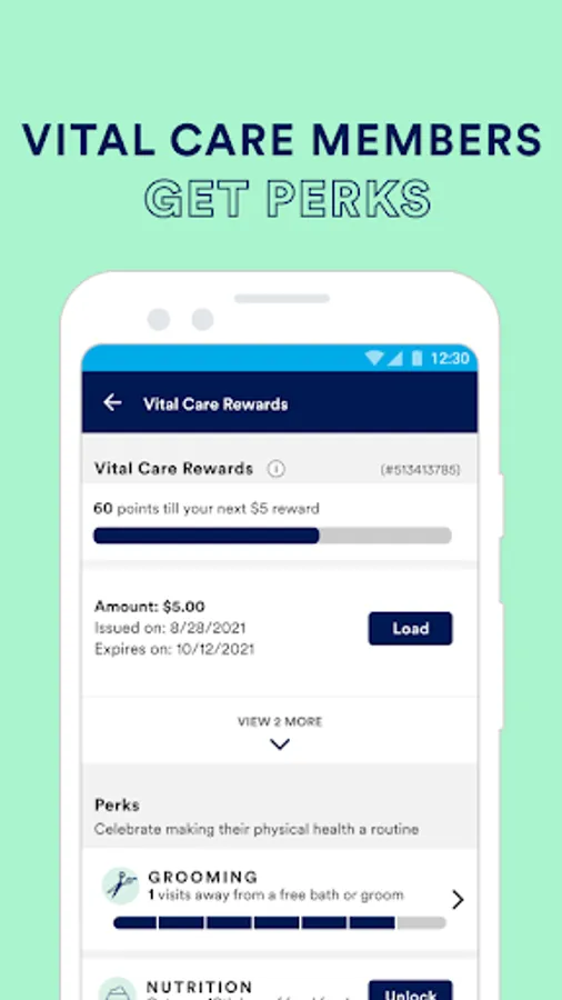 Our Vital Care membership makes pet care easier and more affordable. Track, load and redeem your Vital Care points and Vital Care Rewards in the app.