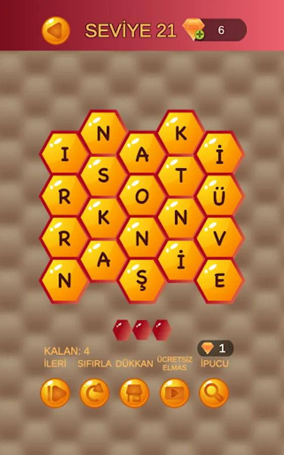 ATTENTION : Honeycomb Word Hunter is a free game, in addition to ads, in-game diamonds can be purchased in real money in order to use the hint feature in the game. If you don't want to use in-game purchases, you can disable in-app purchases from the settings section of your mobile device or tablet.