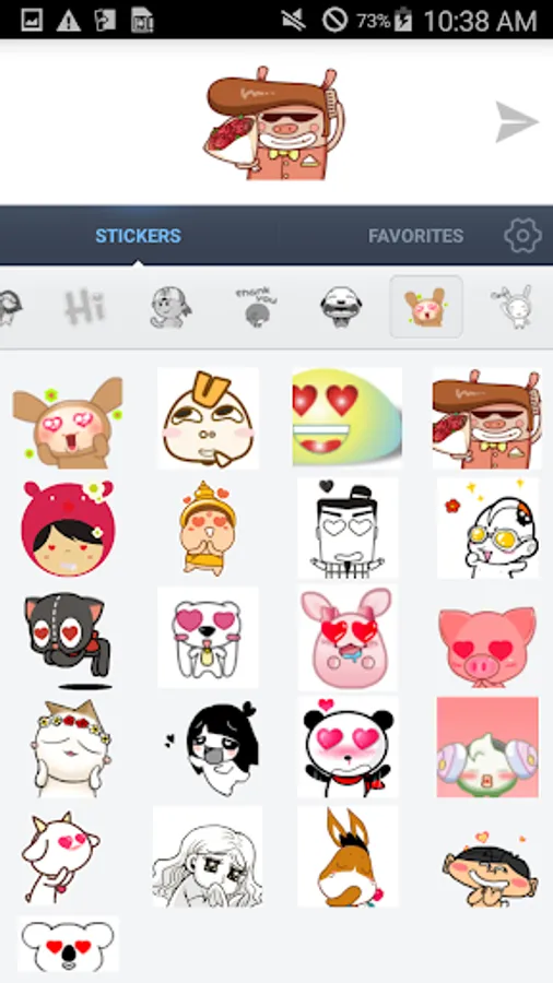 • You can save the frequently used love emoticon / rose stickers / lover smileys to ‘Favorite’ by long clicking it. If you do not like it any more, you can also remove from the ‘Favorite’ by long clicking it in this bucket.