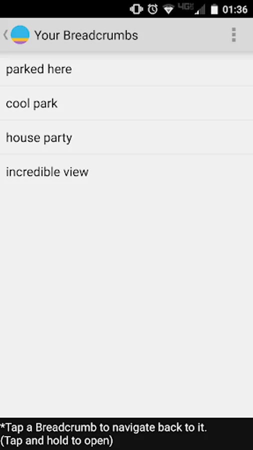 Breadcrumbs allows you to save locations so that you can get directions back. Share directions to your Breadcrumbs easily and privately via text, email, or any other social application. When you park your car, find an important spot, or see a beautiful view, drop a Breadcrumb to remember your location. You can save as many Breadcrumbs as you like. You can also drag Breadcrumbs around the map or tap and hold a location on the map to add a Breadcrumb manually.