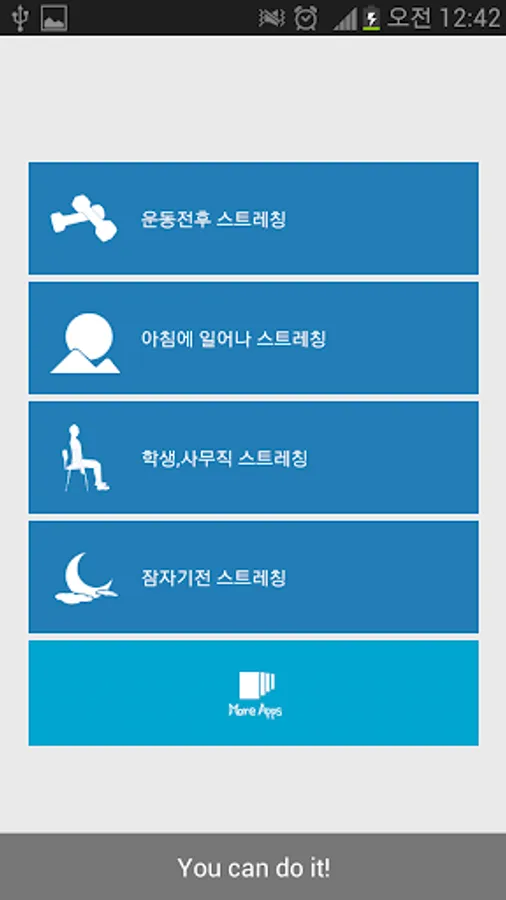 Before and after exercise, after the weather, people in long hours at the desk (student office), divided by bedtime situation, the stretch.