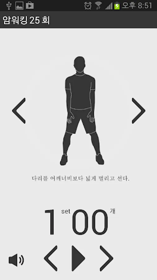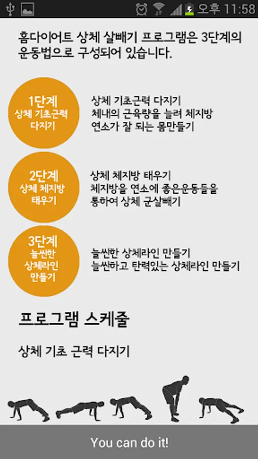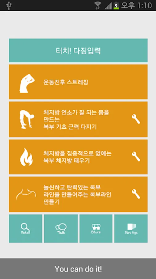 Also chops a workout based on body strength, body fat burning, slim line body make separate the movement of three steps of the user was able to select the desired movement and posture during exercise can be explained, as well as exercises with the sound of the counting application.