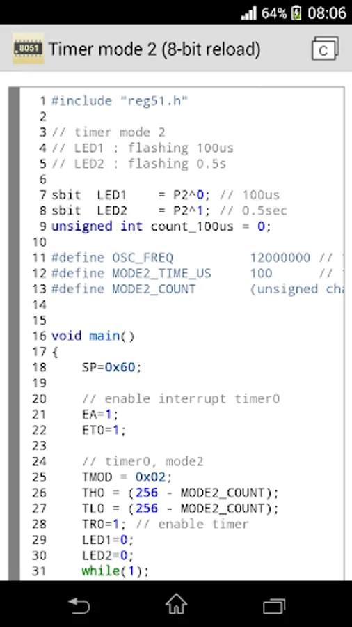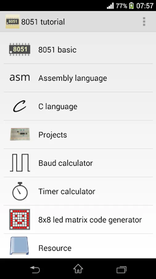 This app is a 8051 tutorial based on C language. It is suitable for hobbyist or engineering students.