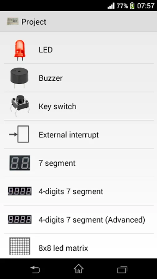 • 12 projects including LED, buzzer, key switch, external interrupt, 7-segment display, 8x8 led matrix, timer (mode 0,1,2)