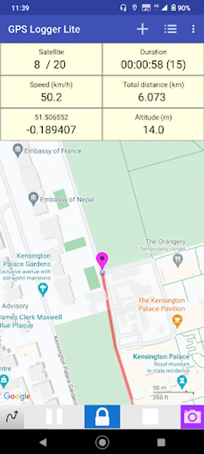 - Background logging GPS latitude, longitude, altitude, speed, pace, total distance