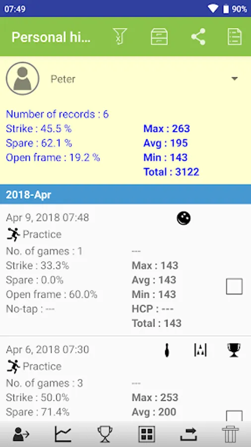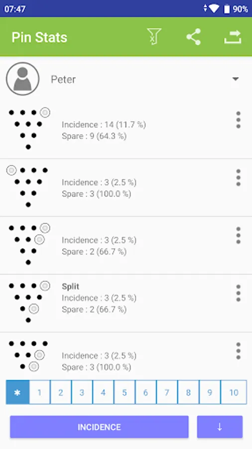 Bowling is my favorite hobby. I need an app to record down the score and pin location for further analyst. For example, what is the percentage of spare of “Big four”? or how many times of continuous 4 strike ? So, I decide to write this app.