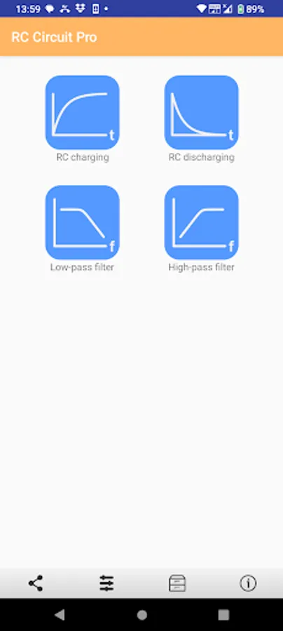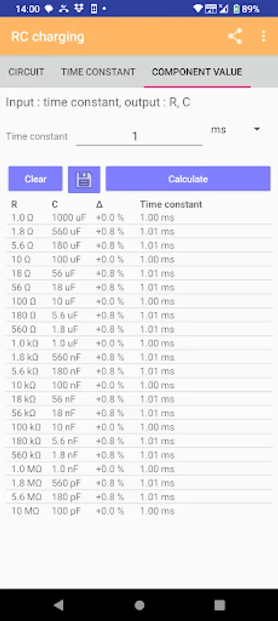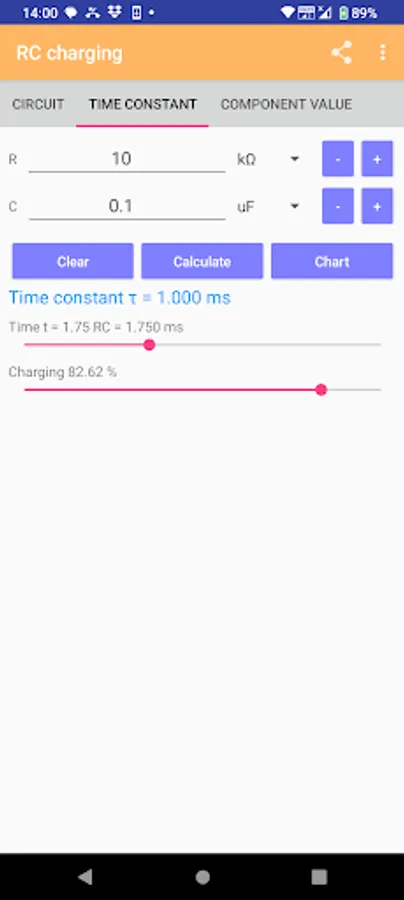This app is used to calculate the RC charging circuit and RC filter. It is suitable for hobbyist or electronic engineers.