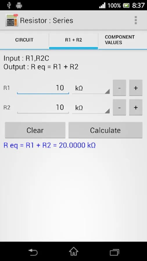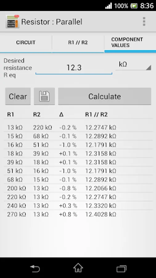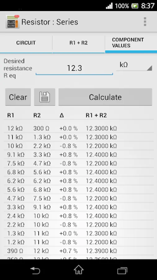 When you do not have an exact resistor value in building a circuit, you need to combine two resistors either in series or in parallel. This app is used to find out all the combinations of these resistors making a desired resistance.