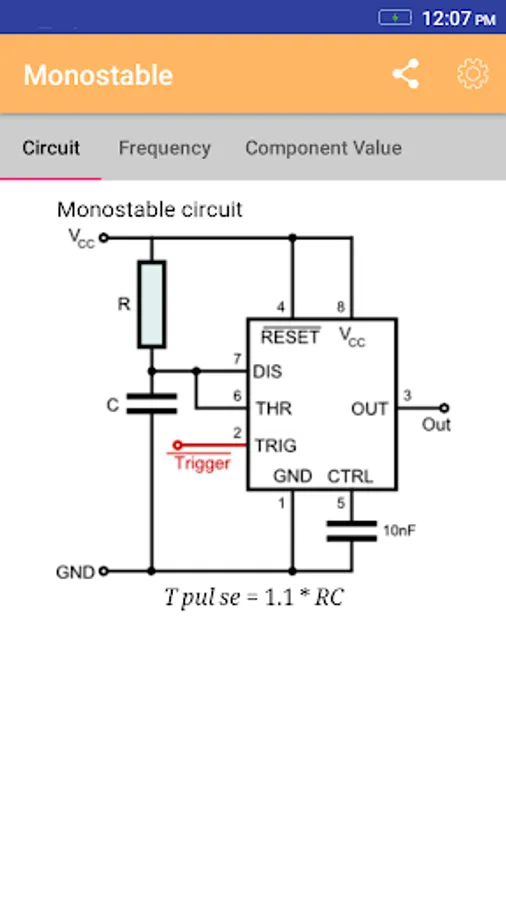 IC 555 is a basic timer IC for hobbyist or electronic engineers. This app is used to calculate monostable and astable circuit