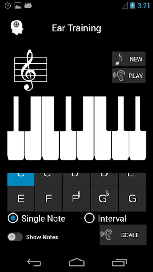 The app plays a note in the selected key / clef. You try to identify the correct note by tapping the correct key on the keyboard.