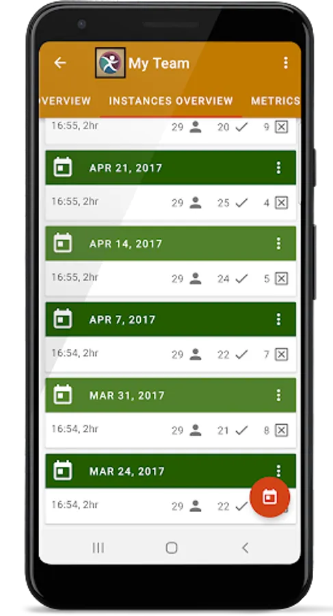Create groups of persons, define dates of instances and track the attendance of each person during each instance.