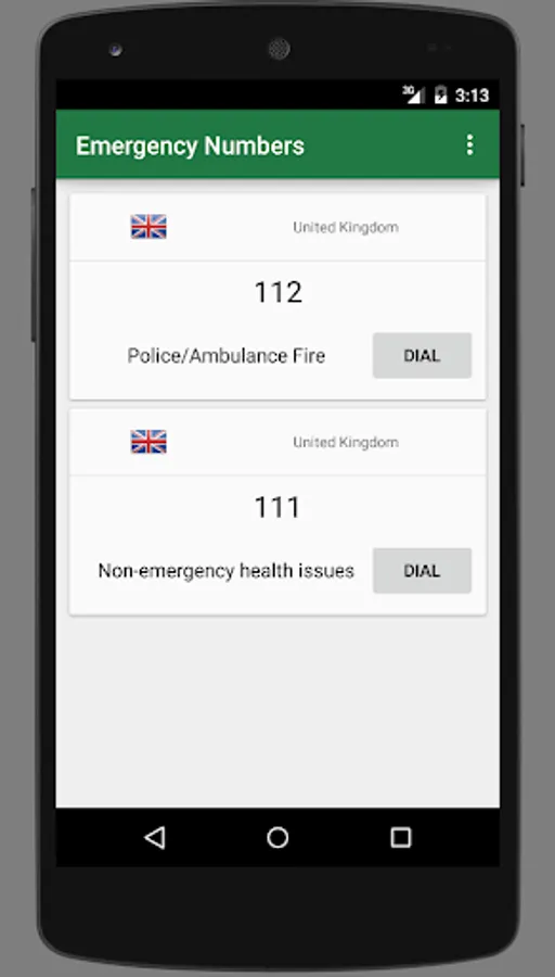 This app will show the emergency numbers of a country of choice. Configure the country using the settings page within the app. Please contact us by mail to request new (country) emergency numbers to appear in the app.