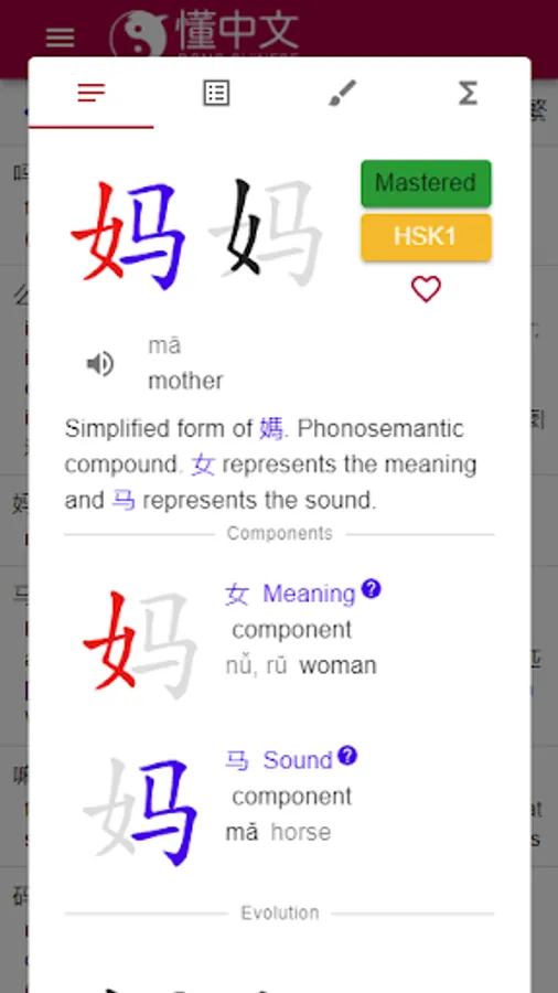 Understand the building blocks of Chinese characters through full explanations of their component parts and etymology.