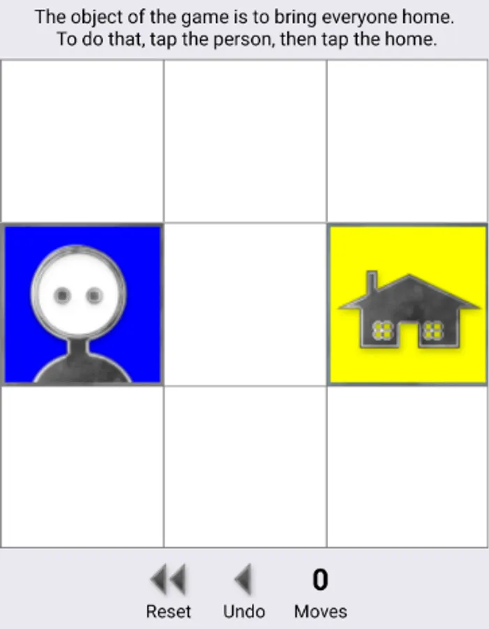 The Magnet Puzzle is a simple logical game involving three types of pieces: people, blocks, and homes. All of these pieces are able to pull other pieces towards them. The object of the game is to bring all of the people home in as few moves as possible.