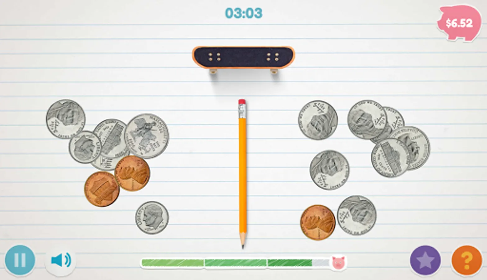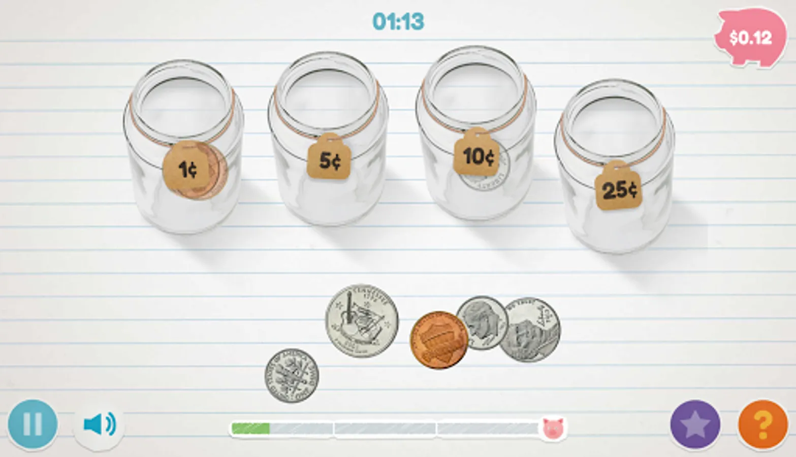 • Test your coin counting skills playing three fun games (Value of Money, Count Off, Which is Greater?)