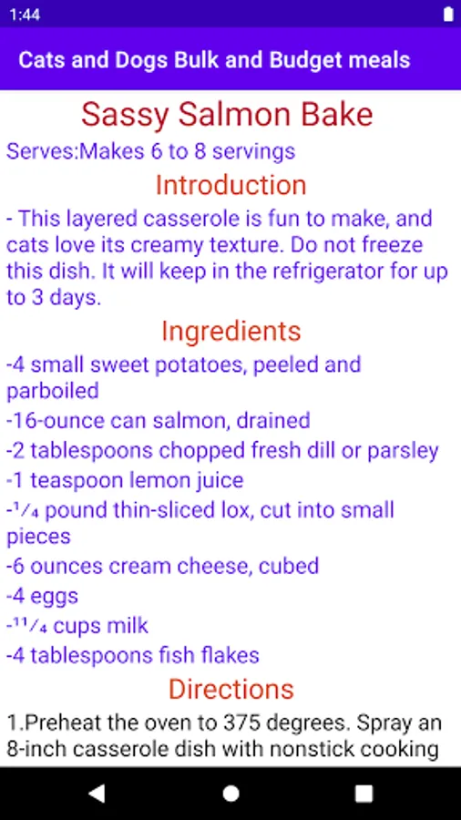 This app is filled with recipes that don’t require a lot of prep time. plus, they’re all simple to make. Divide these dishes into single-serving portions, seal them in vacuum-sealed food storage bags, and toss them in the freezer for up to 3 months. I like to combine these recipes with a cat’s regular kibble in place of canned cat food. These recipes are no-fail, so have fun and be creative!
