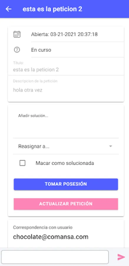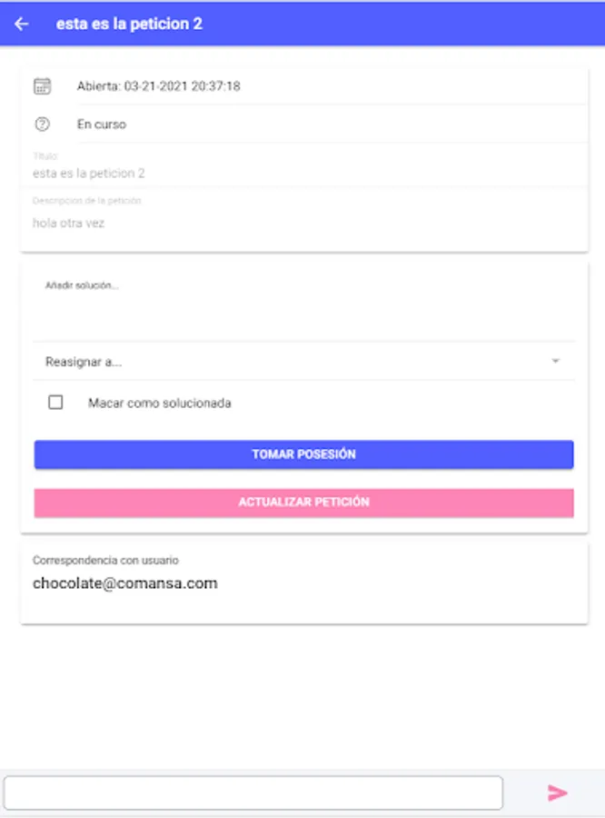 Desarrollo de una aplicacion dedicada a la creación y gestión de peticiones dentro de una empresa con usuarios y gestores usando chat y/o fotos