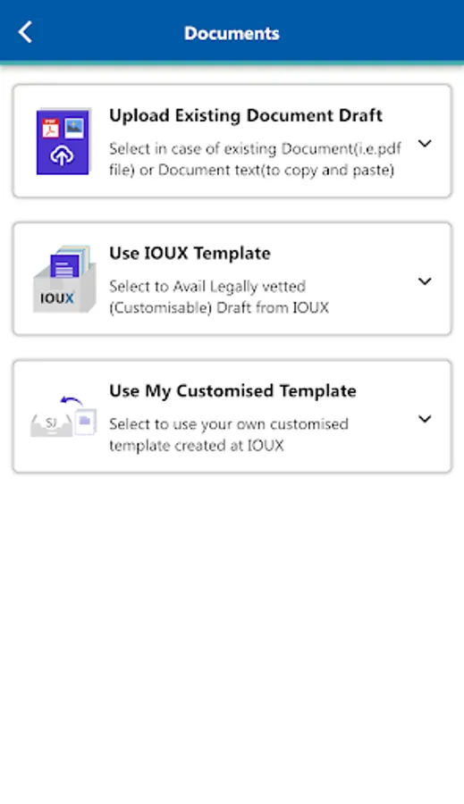 IOUX is an online Contract Execution System with legally vetted templates of draft agreements which can be edited, shared among all parties, eStamped, eSigned by all, eNotarised and stored in digital form. Draft template agreements are available for all kinds of transactions & commitments / deals with the option to Create and upload your own draft which can be executed on-line with all digital facilities for execution.