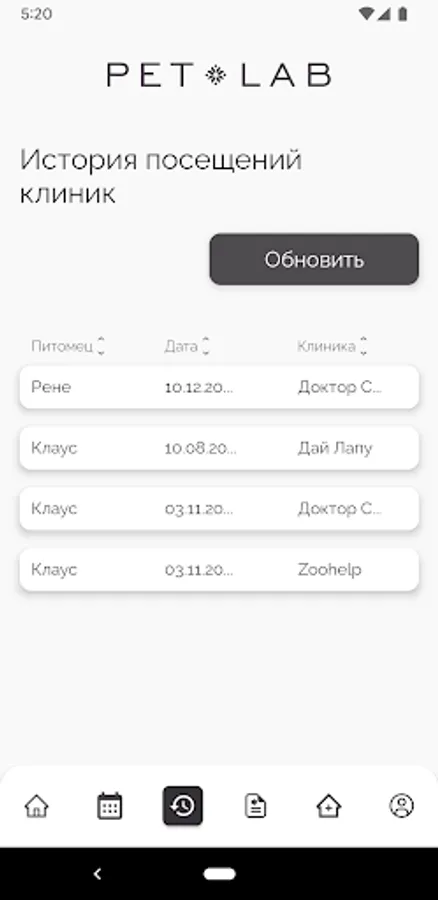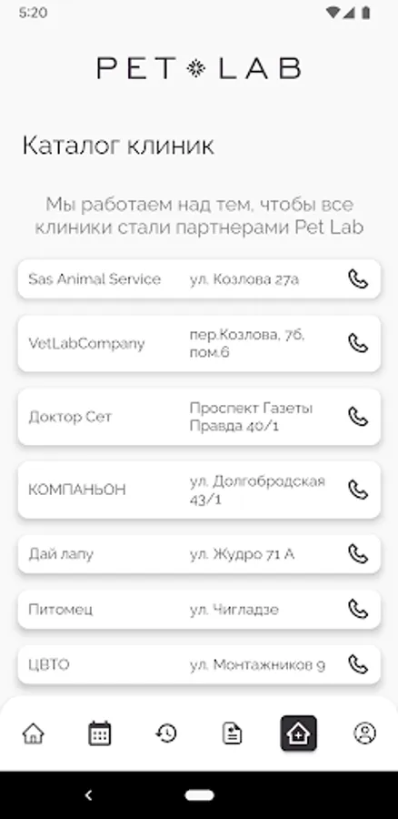 Synchronization of data with the veterinary clinic occurs automatically - examinations, conclusions and recommendations after the visit fall into the pet's profile, are no longer lost and are always at hand. You will be able to take better care of your pets. The collected data will help the veterinarian accurately diagnose the condition of the pet and prescribe effective treatment.