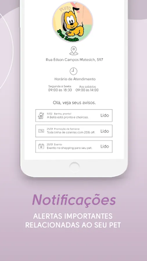 We created and made this application available, seeking to make all interaction with us even easier, there are several functions available, some of these are: bath schedules, veterinary consultations, vaccine history, warnings, and also a chat for any questions you have, just to call. Undoubtedly all this in an agile and easy way.