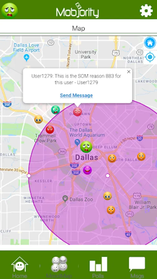 See the mood of an area after a big event. Like checking the mood of the city after a championship win, a political election, breaking news, or a slow weekend. You can also affect the mood of an area by the mood you choose.