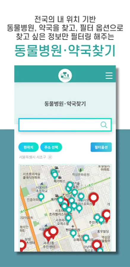 -Search veterinary hospitals and pharmacies nationwide based on your location, and filter only the information you want to find through filter options