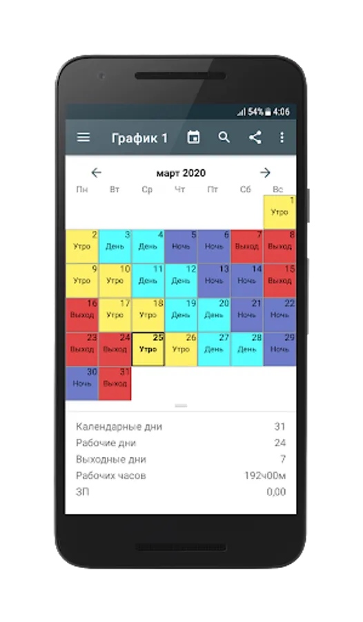 Shift schedule - a convenient and simple calendar that allows you to calculate and view work shifts.