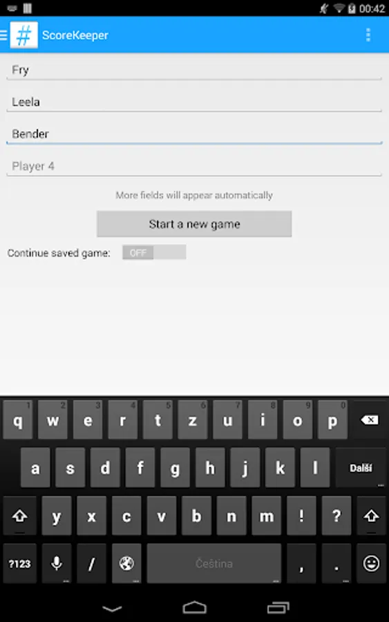 I've lost the key I need for updating this app, so I can't support it anymore. However, I have published the exactly same app https://play.google.com/store/apps/details?id=com.petrkubes.newscorekeeper only with bug fixes and impovements people have requested. I highly suggest to download that one instead, because this one will probably never receive any updates.