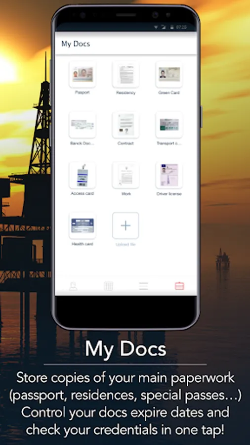 STORE copies of your main paperwork in B2BACK app: passport scan, residency, special passes for onshore/offshore shifts, etc.