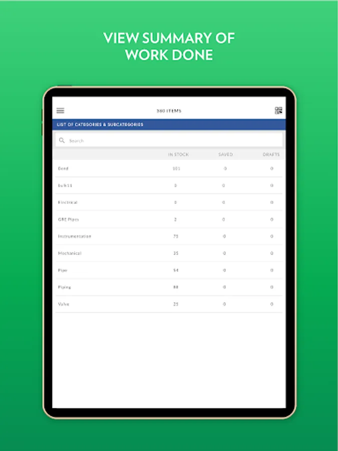 Automate day-to-day inventory operations by accessing material source documentation, tagging, logging, and tracking material usage, and searching for inventory data available on your mobile device; freedom from being logged into an office system.