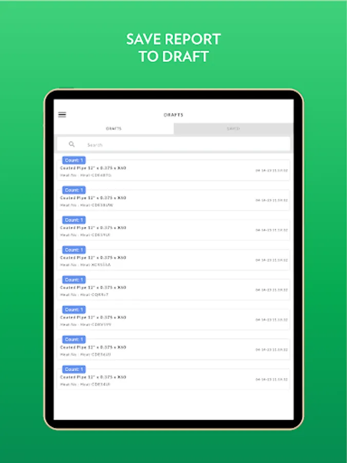 * Enables inspection using material specific inspection checklists for ensuring completeness.