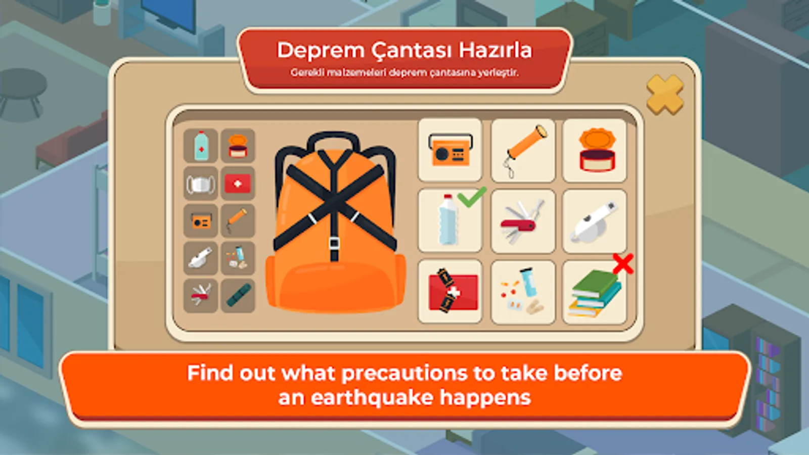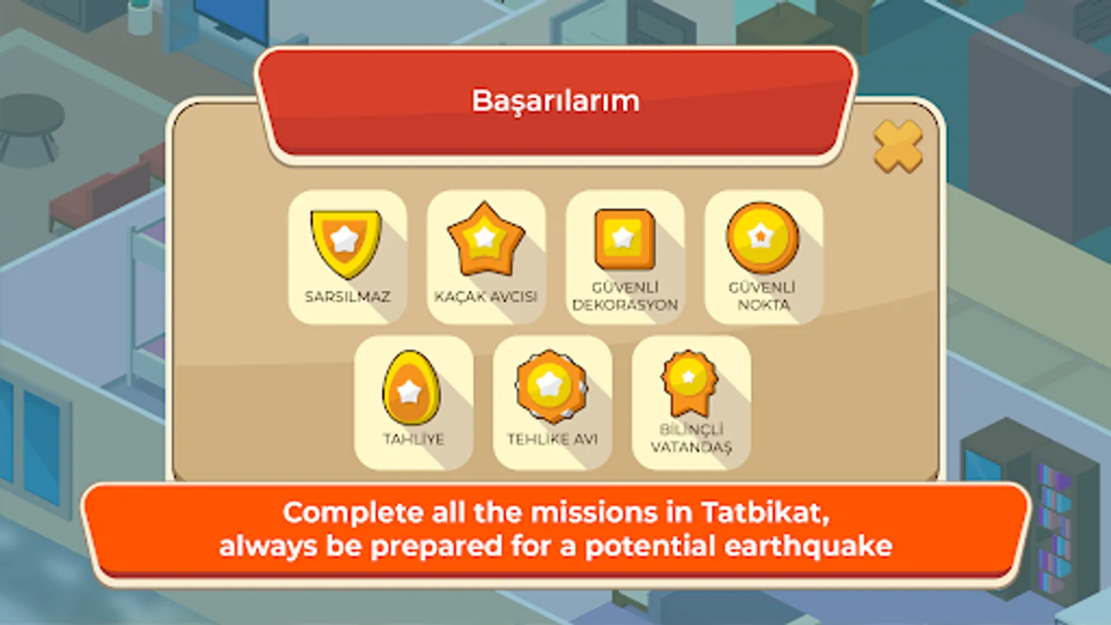 Experience Tatbikat which prepares us for possible earthquakes with educational missions. In this game, which aims to create awareness for earthquakes, you can learn every step that needs to be taken in preparation for, during, and after earthquakes in detail. Offering an earthquake education, Tatbikat is a practical way to create earthquake awareness for people of all ages through gamification. If you always want to be prepared for an earthquake, download Tatbikat now. Learn ways to be prepared for yourself and your loved ones through experience!