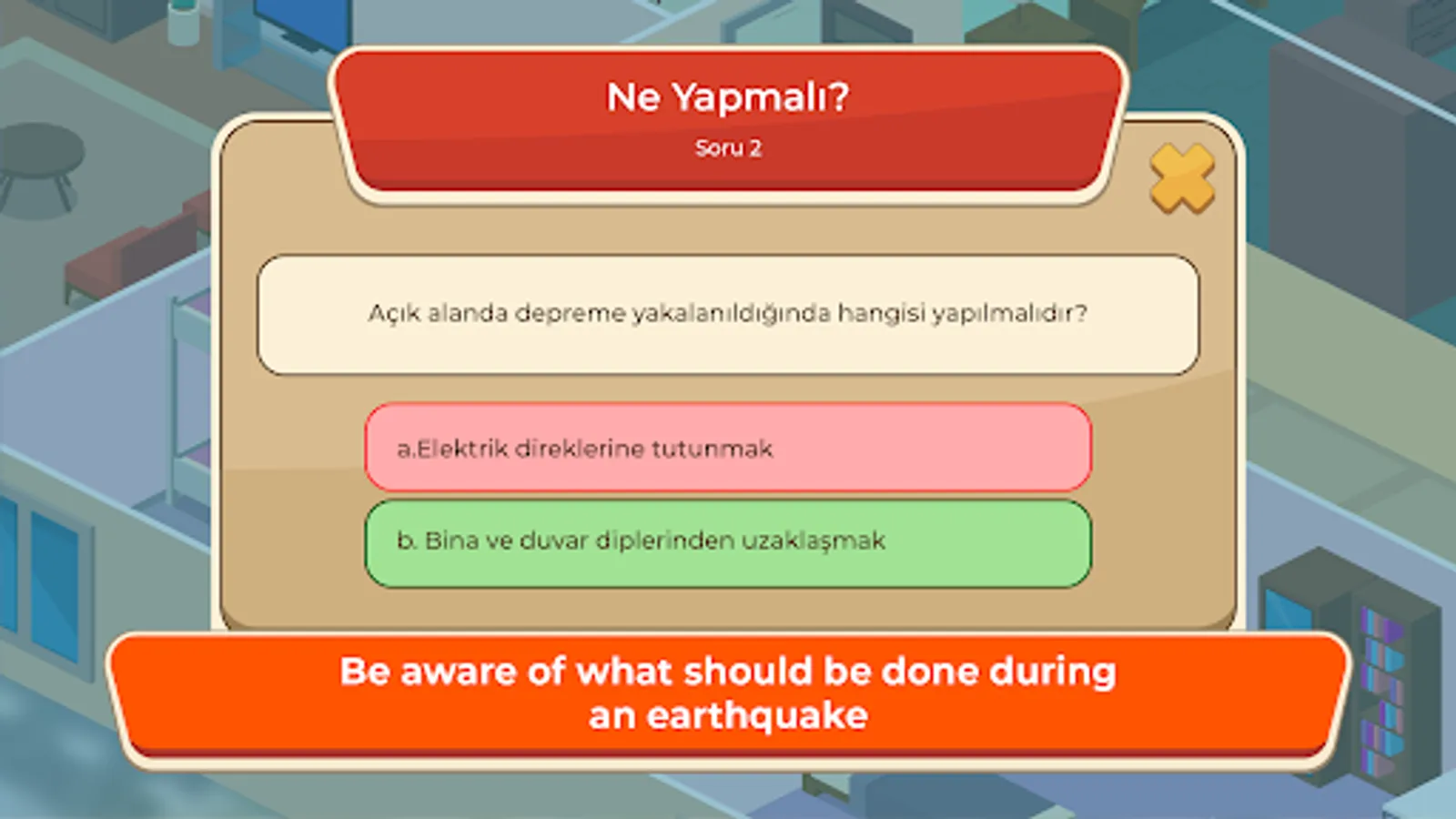 This game was developed in order to create awareness against possible earthquakes in Turkey after the earthquakes that hit Kahramanmaraş, Elbistan and the surrounding region in February 2023.