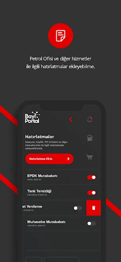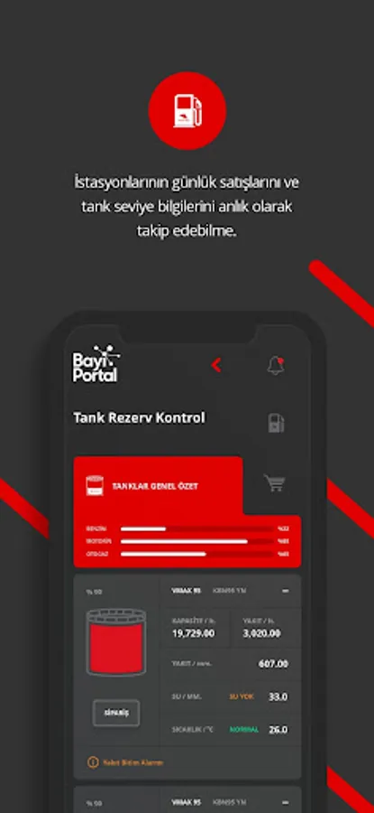 With Petrol Ofisi's new Dealer Portal application, announcements, campaigns, order screens and notices about Petrol Ofisi are always at hand. You can easily track your daily sales and tank level instantly and access your sales reports. By adding reminders about Petrol Ofisi and other services you may need, you can ensure that the application informs you periodically.