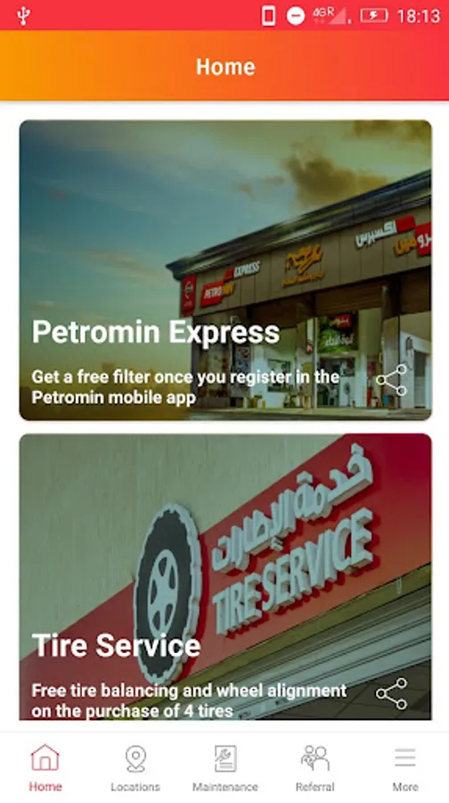 The Petromin app comes with a variety of features including a view of the latest offers across all of our businesses, a full-fledged station locator for all Petromin outlets (including Petromin Express, Petromin Auto Care, Fuel stations, Primo convenience store, and Nissan showrooms), maintenance history access for Petromin Express and Auto Care, and a Refer a Friend benefit scheme!