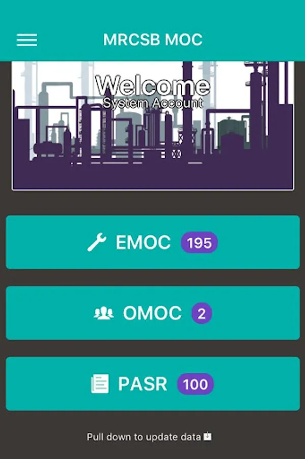 This application provides quick and easy on the go access on MRCSB Management Of Change (MOC) information and status updates. Provide interactive data viewing and listing for more effective and accurate analysis. Allow user to view the changes statistics and conduct analysis through the interactive and comprehensive report generated. This application derived the information and data from a web-based online MOC which introduce more systematic, effective and centralized system in managing operational changes e.g. engineering changes, procedural changes or organizational replacing the existing manual system.