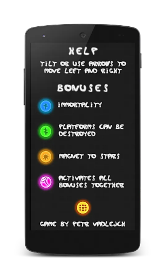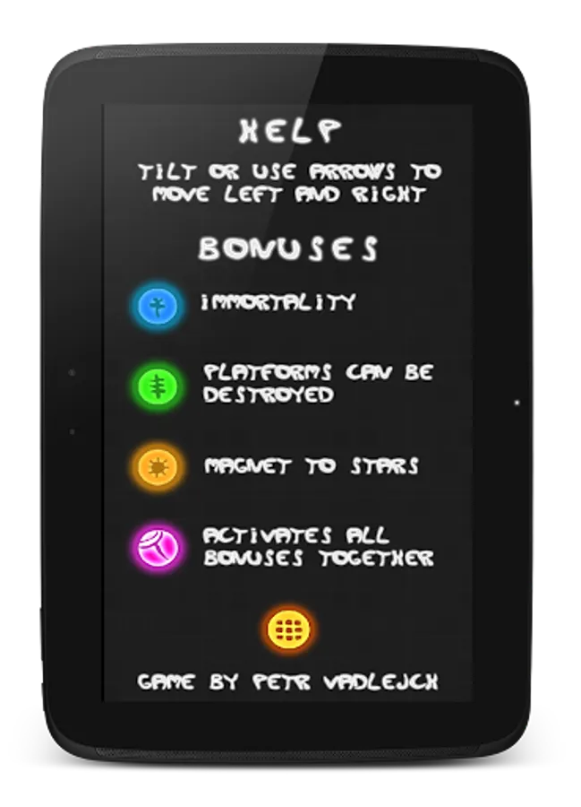 * Use green bonus to be immortal and be able to destroy platform by touching it (active for 5 seconds)