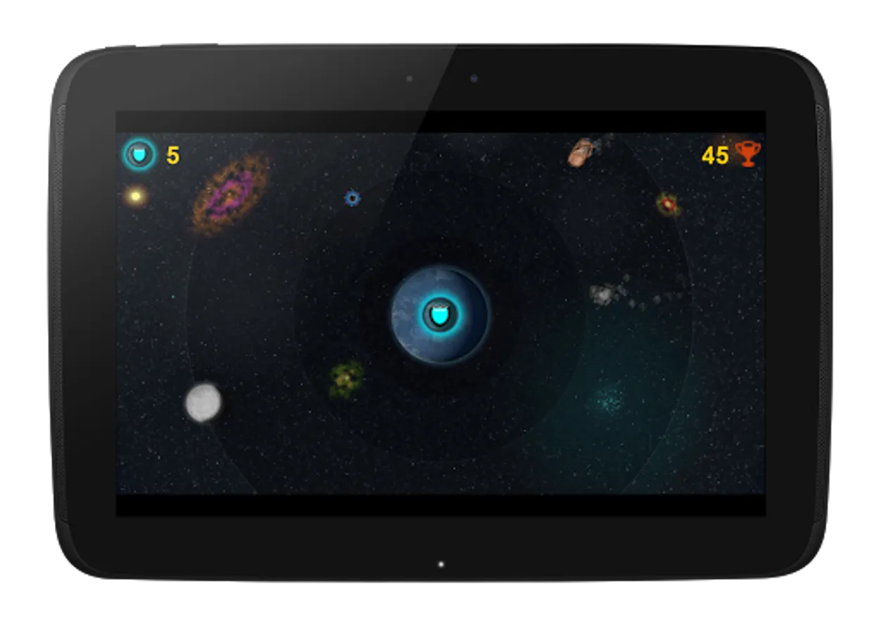 ** Eight levels/asteroid waves with the increasing number of meteors that you must destroy.