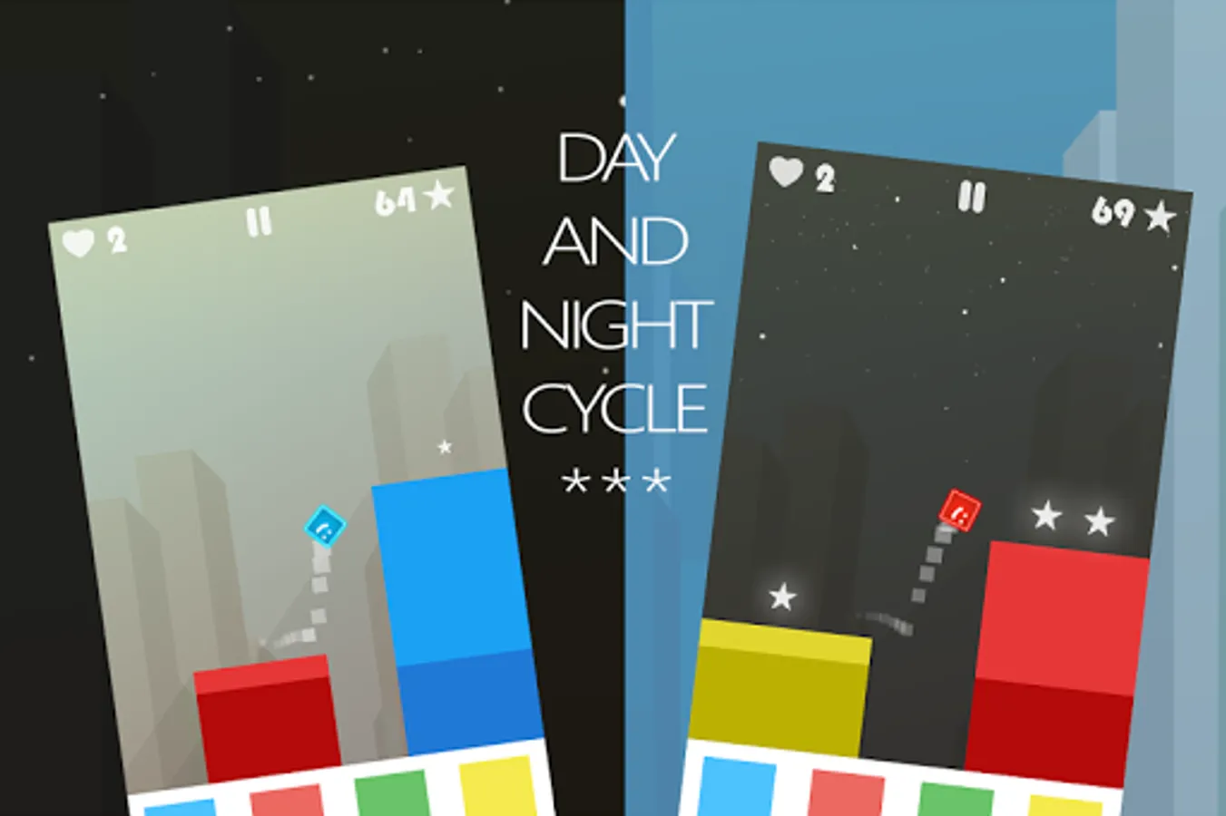 Welcome to Square Jump City, the endless run and jump arcade game. Tap on color buttons to change color of the Square shape hero that matches landing platform color. You can double jump from platform or even jump in the air when falling. It is also possible to change the color while jumping if you change your mind, but you can not jump more than twice until you land on any platform. Just remember that you need to land with appropriate color.