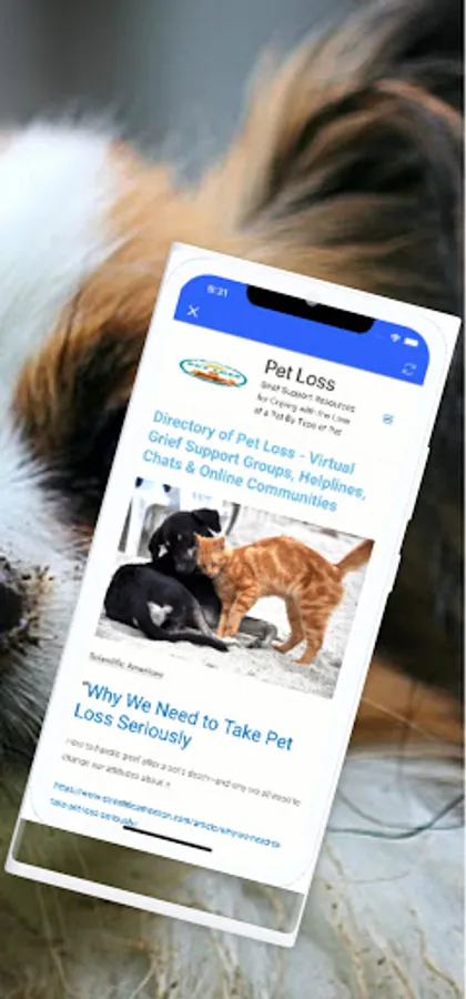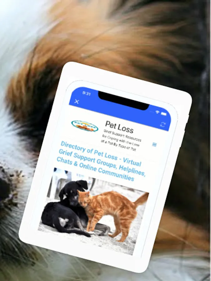 2. DIRECTORY of "Pet Loss - Virtual Grief Support Groups, HelpLines, Chat Spaces & Online Communities" per type of loss experienced. App users are provided with the latest and most comprehensive directory of virtual grief support groups available to pet owners grieving their pets.