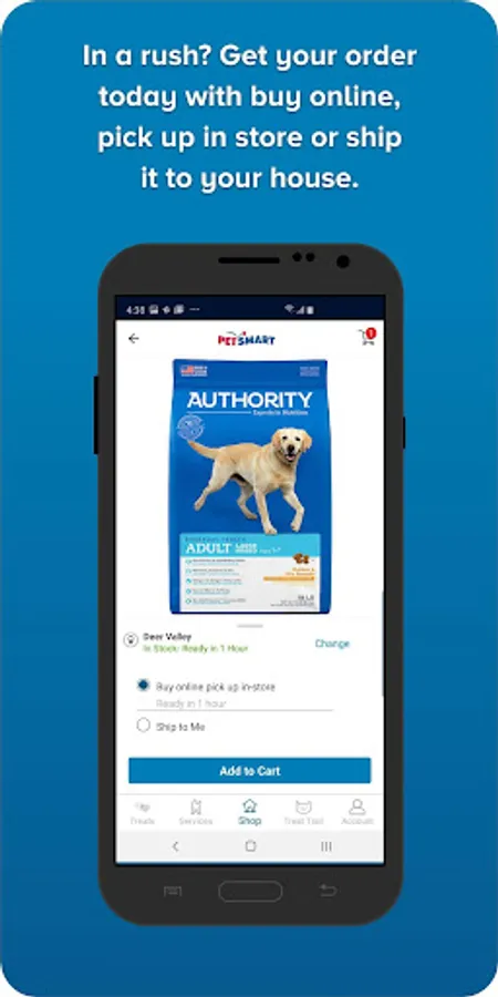 • With in-app shopping, you can get all your pet essentials in one place. In a rush? Get your order in 1 hour with buy online pick up in store.
